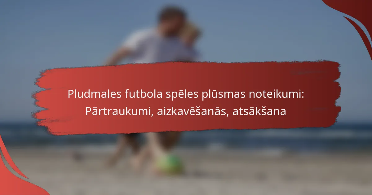 Spēles atsākšana pēc pārtraukumiem pludmales futbolā ietver specifiskus protokolus, lai nodrošinātu drošību un taisnīgumu. Šie noteikumi aptver dažādas situācijas, tostarp traumas, laika apstākļu aizkavēšanās un tiesnešu atbildību, lai saglabātu spēles plūsmu.